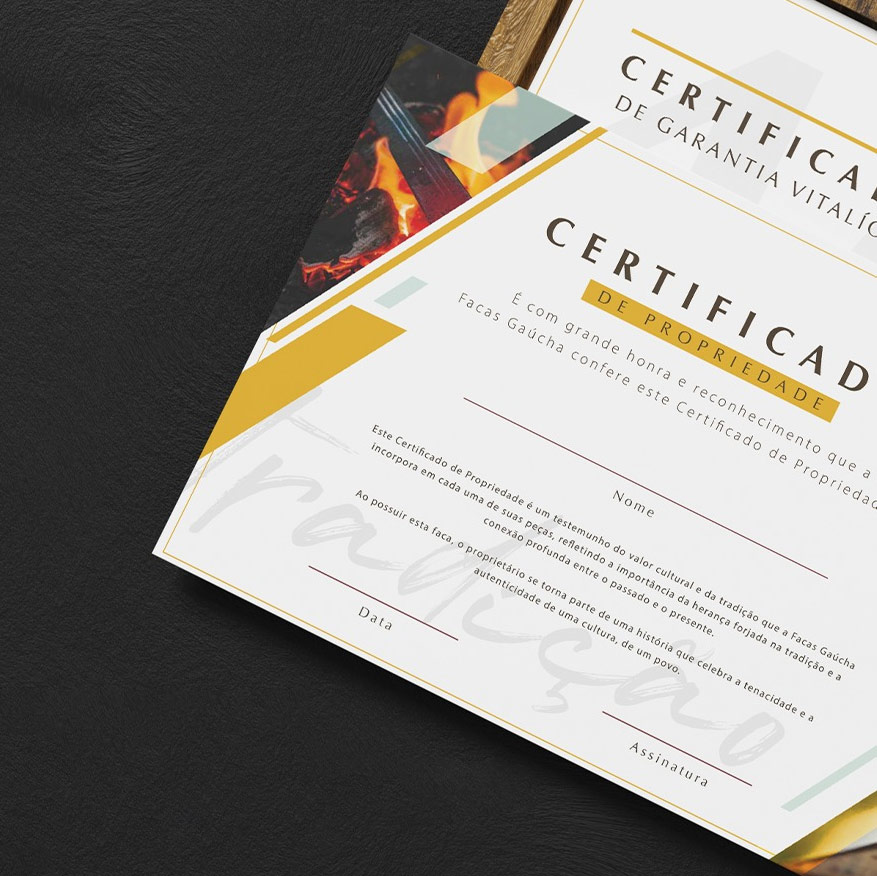 Documentos que comprovam a exclusividade da sua peça e asseguram garantia vitalícia.