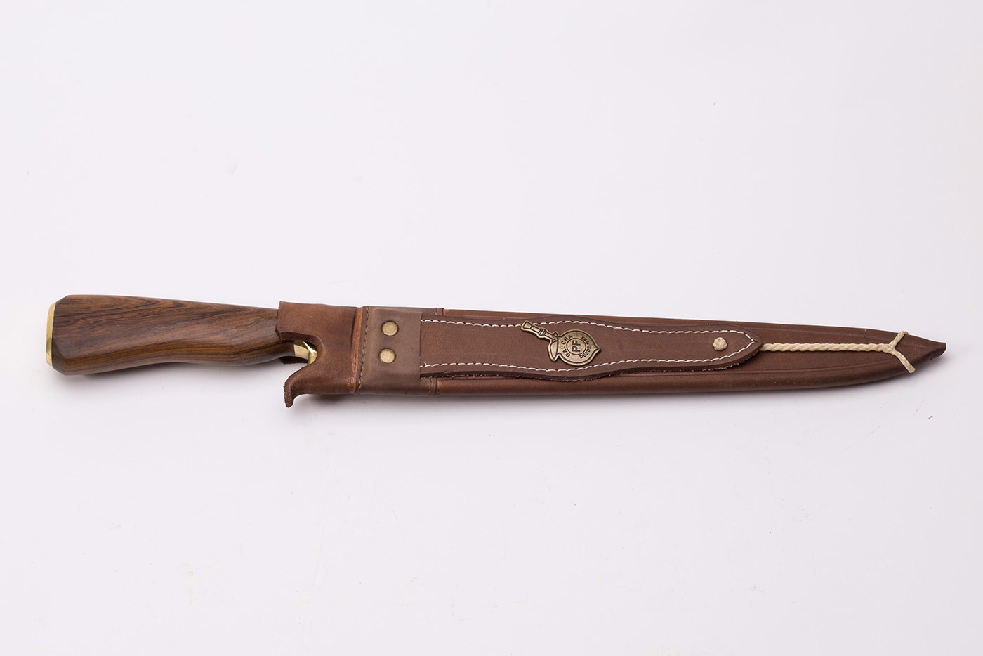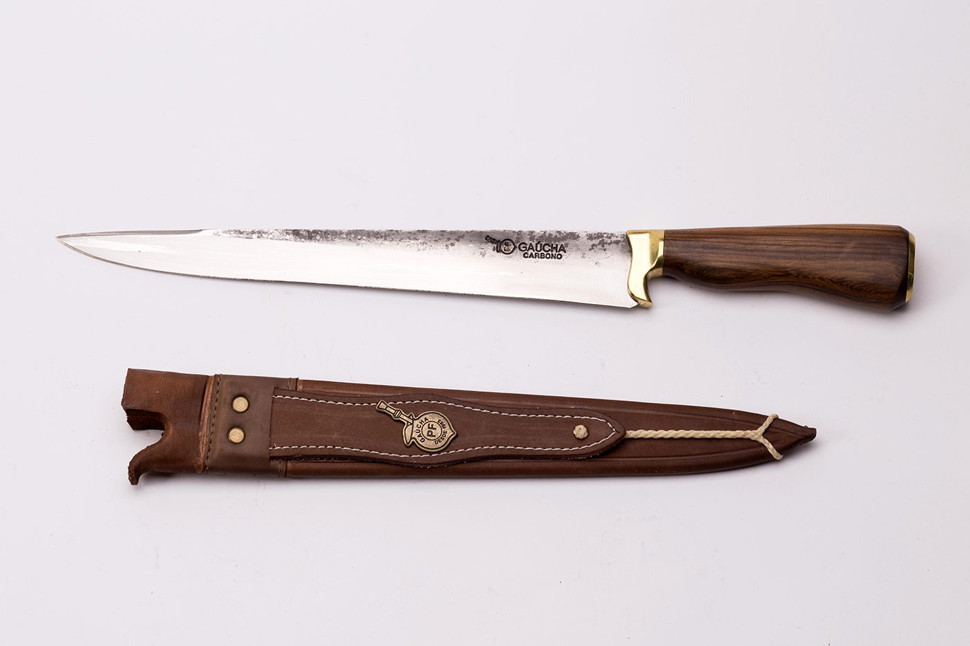 Faca javalizeira em aço carbono 3,75 mm de espessura com cabo de madeira e bainha em couro